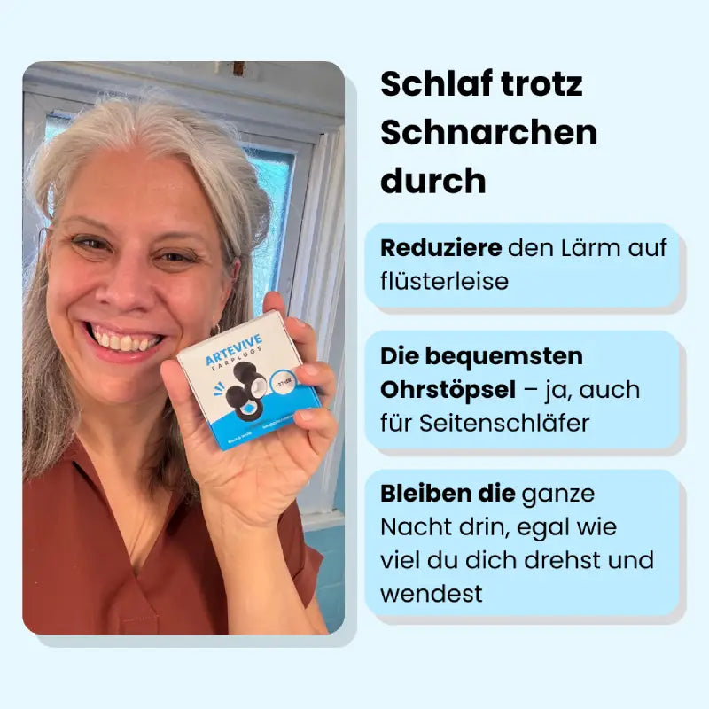 Sagen Sie schlaflosen Nächten neben einem schnarchenden Partner Lebewohl. Unsere Ohrstöpsel blenden jegliche Schnarchgeräusche sofort aus! Genießen Sie wieder gemeinsam erholsame Nächte.